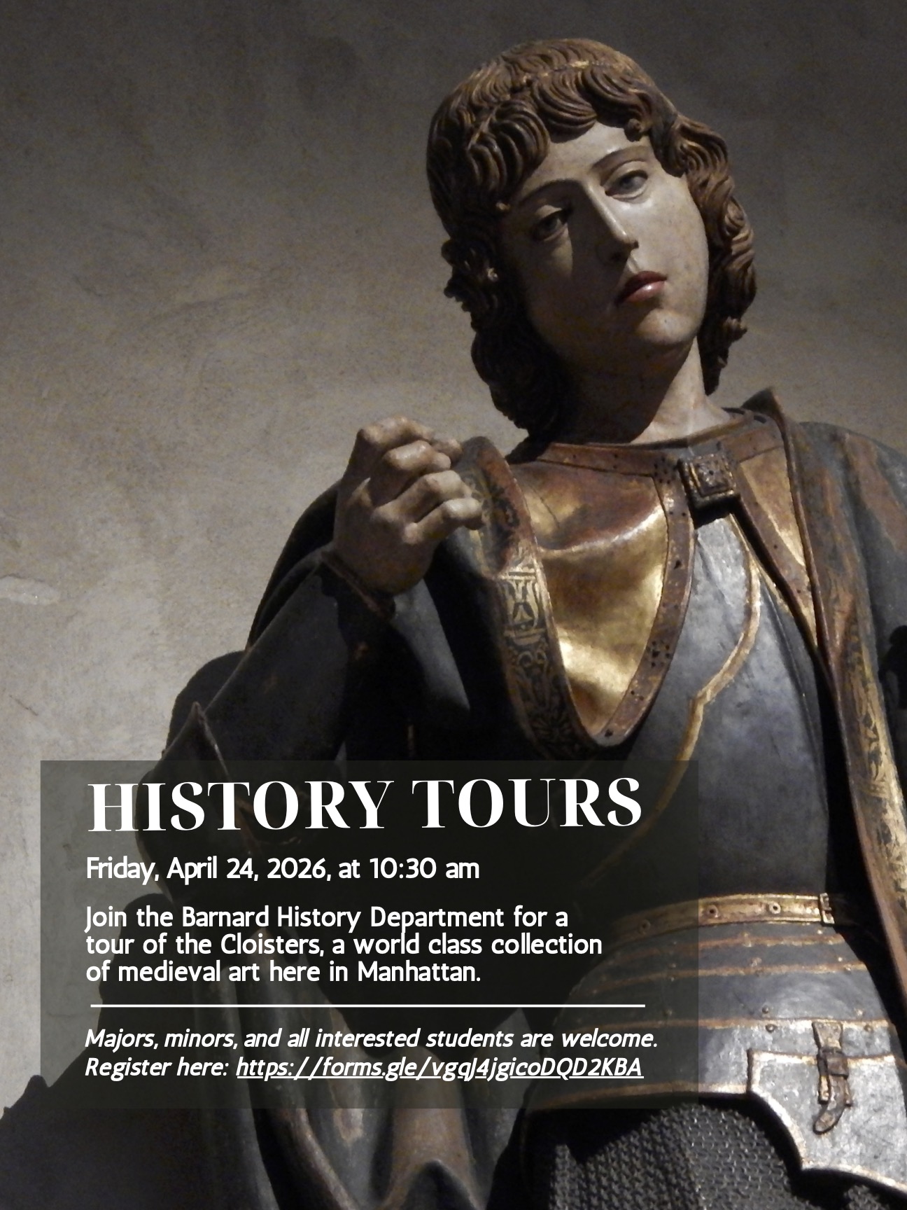 Join the Barnard History Department for a guided tour of the Met Cloisters! This is a world-class collection of medieval art just a short hop away.
